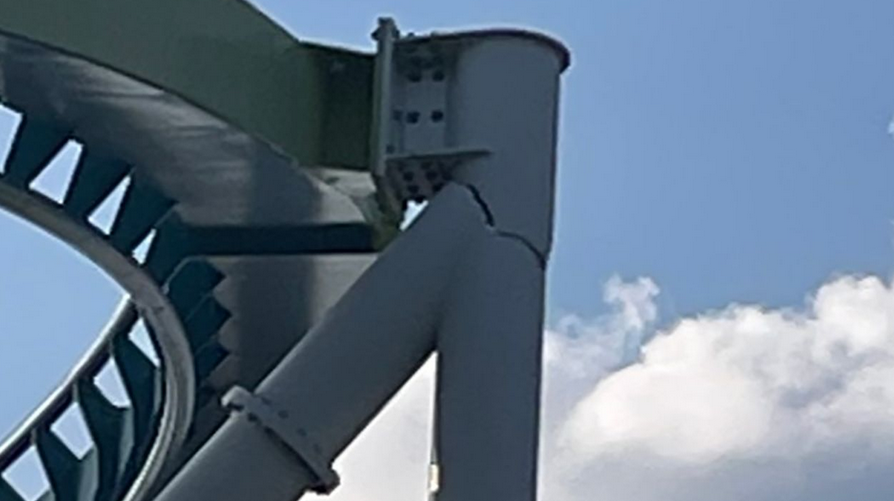 Ein Besucher eines Vergnügungsparks in North Carolina entdeckte einen Riss im Stützpfeiler einer Achterbahn, während die Fahrgäste auf der Fahrt waren.