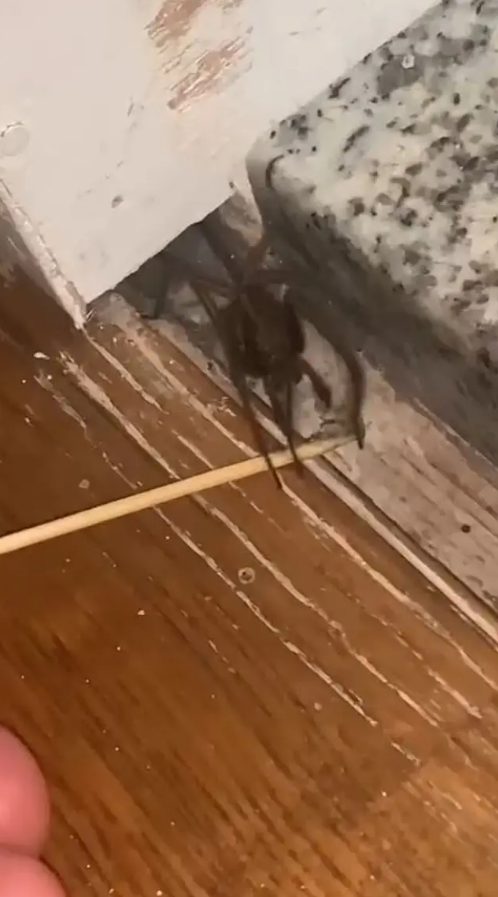 Die Mutter machte den Mann bereits auf das Tier aufmerksam, also kehrte Scott mit Brude und Stiefvater zurück. Nach einer kurzen Suche entdeckten sie ein kleines, mit Spinnweben bedecktes Versteck und begannen zu filmen. In dem von Mason aufgenommenen Film ist zu sehen, wie Dean mutig einen Zahnstocher über ein Loch in der Fußleiste neben dem Esstisch hält. Dann kam es zum Vorschein.