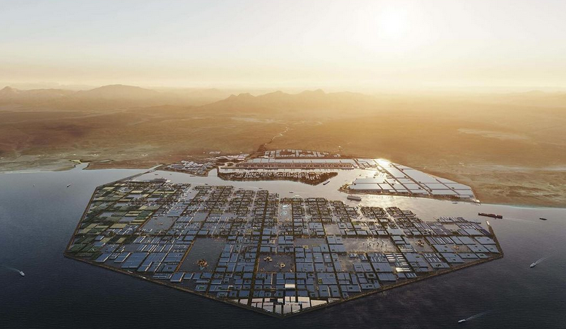 Diese Stadt wird die größte schwimmende Struktur der Welt sein und über einen automatisierten Hafen und ein Logistikzentrum verfügen. Das Projekt ist Teil der Vision von Kronprinz Mohammed bin Salman, das Königreich bis 2030 zu modernisieren.