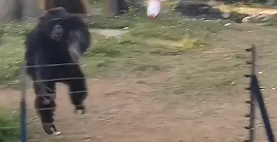 Doch hinter dem gekonnten Schuss des Schimpansen steckt alles andere als eine lustige Geschichte.