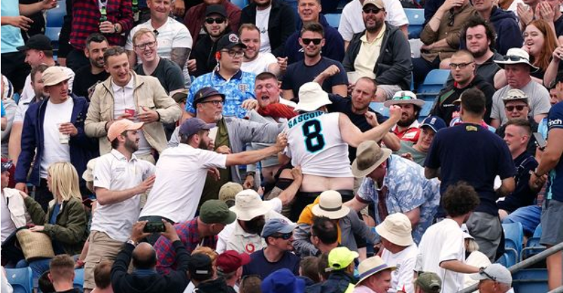 Beim Testspiel der Cricket- Mannschaften England gegen Neuseeland ist es auf der Tribüne zu einer heftigen Schlägerei gekommen.