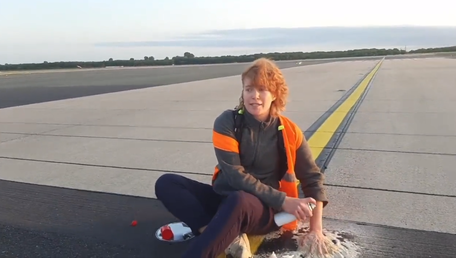 Doch die Aufregung beginnt, als die Klimakleber sich beginnen auf der Startbahn festzumachen. Sie befestigen ihre Hände nämlich mit einer Mischung aus Beton und Epoxidharz. Dieses Gemisch, das üblicherweise für Bauzwecke verwendet wird, härtet mit der Zeit aus und kann dazu führen, dass die Hände dauerhaft geschädigt werden. Sogar eine Amputation der Hand kann bei zu langem und falschen Gebrauch nötig sein.