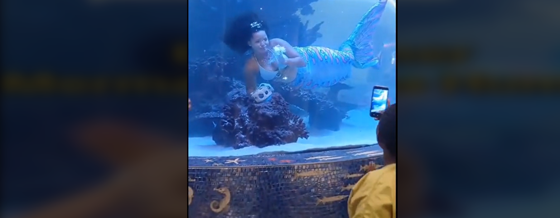 In einem gigantischen Aquarium eines Einkaufszentrums in Südarfike sorgt eine professionelle Schwimmlehrerin als Meerjungfrau für strahlende Kinderaugen. Doch kürzlich kam es zu einem beängstigenden Vorfall.