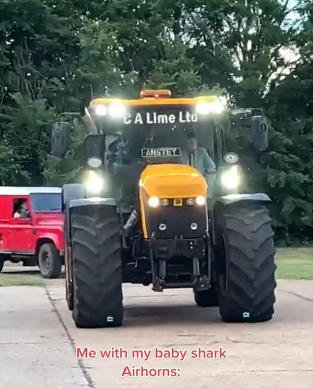 Das Video, das er auf TikTok gepostet hat, zeigt einen Parkplatz voller Autos, bevor er einen riesigen Traktor ins Bild kommt, der zudem voller Freude das Baby Shark Lied aus dem Airhorn spielte. Baby Shark ist eines der bekanntesten Lieder der Welt, nachdem es als Meme zu großer Popularität gelangte. Es ist aktuell das meistgesehene Video auf der Plattform Youtube.