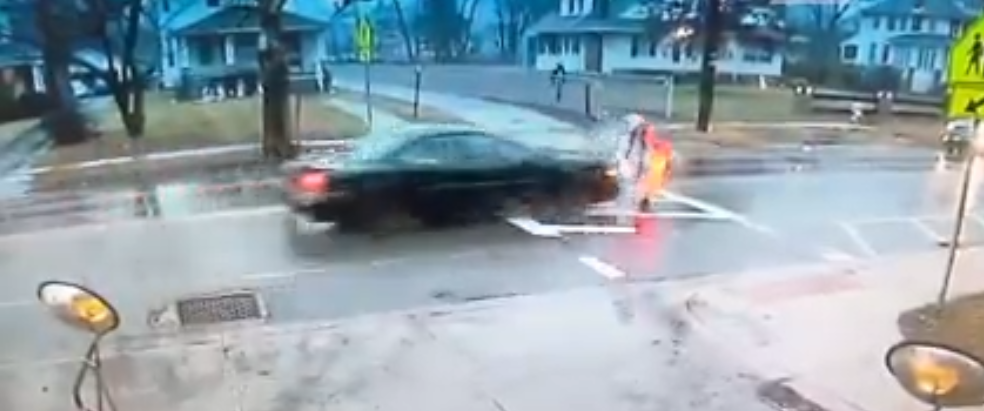 Ein Video zeigt den Moment, in dem eine "heldenhafte" Schülerlotsin ein Kind zur Seite warf, um zu verhindern, dass es von einem Auto angefahren wird, das nicht anhielt - nur um dann selbst überfahren zu werden.