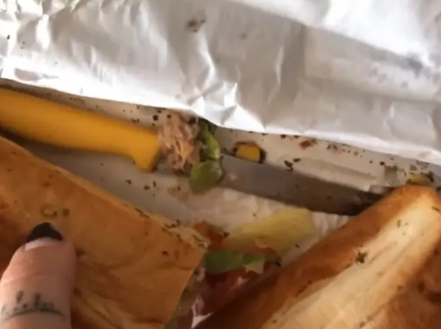 Eine 21-jährige Frau traute ihren Augen nicht, als sie mitten beim Verzehr eines Subway-Sandwiches ein Messer im Inneren der Mahlzeit fand.