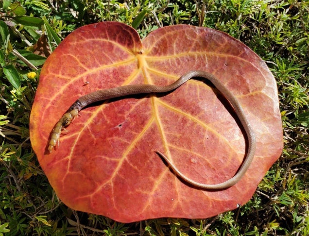 Die Tantilla oolitica (Felskronennatter) wurde kürzlich zum ersten Mal seit vier Jahren wieder auf der Inselkette gesichtet. Leider wurde das Tier tot aufgefunden, mit einem halb verschluckten Riesentausendfüßler im Maul. Bisher wussten die Wissenschaftler nicht genau, was diese Art frisst, weil sie so selten gesichtet wurde.