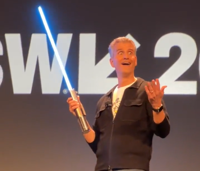 Disney Parks and Experiences Chairman Josh D’Amaro gave a presentation at 2023 SXSW showing off a "real" lightsaber