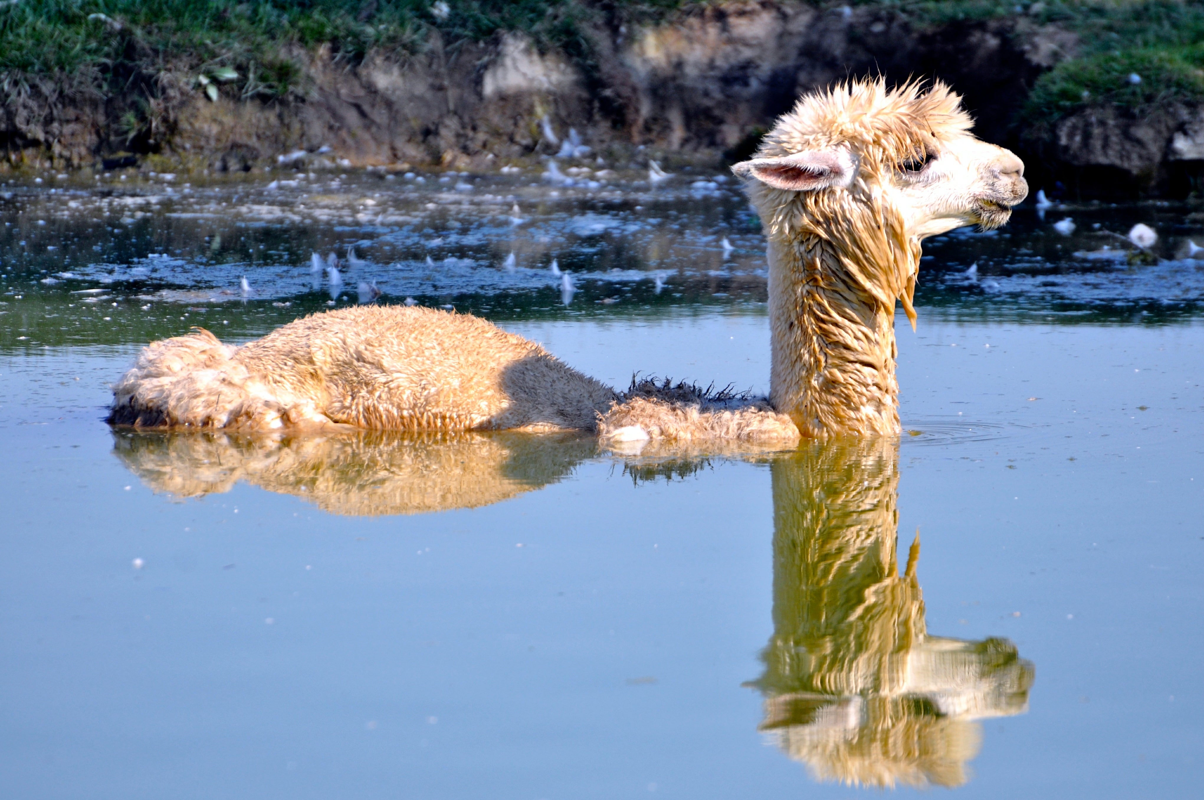Eines der Alpakas wurde gefangen, als es eine Abkühlung im Loch genoss.