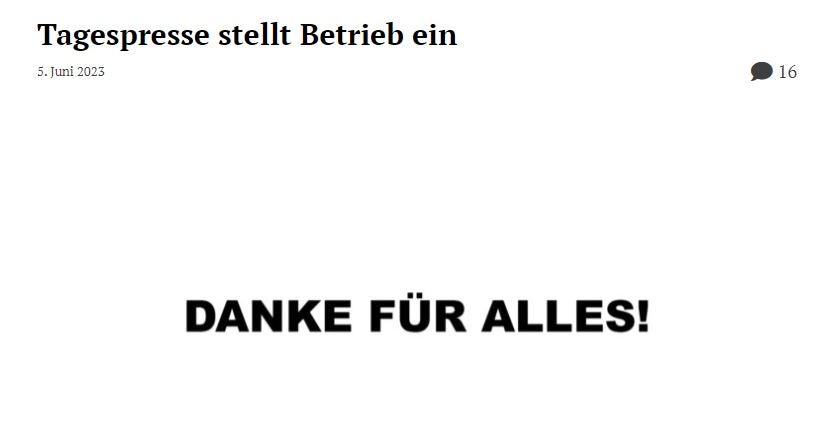 Eine Stunde später legte die "Tagespresse" mit einem Statement nach: "In eigener Sache: Zehn Jahre lang durften wir Sie mit unserer Berichterstattung begleiten. Nun haben wir uns dazu entschlossen, das Projekt einzustellen."