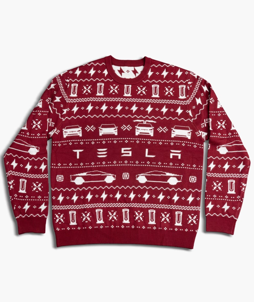 Im Online-Shop des E-Auto-Herstellers konnte man einen Weihnachtspullover bestellen, auf dem alle Fahrzeuge und die Supercharger-Ladestation abgebildet sind. Innerhalb kürzester Zeit war dieser ausverkauft. Mit rund 65 Euro, was pro Stück verlangt wurde, dürfte die Aktion auch etwas Geld in die Kassen gespült haben.