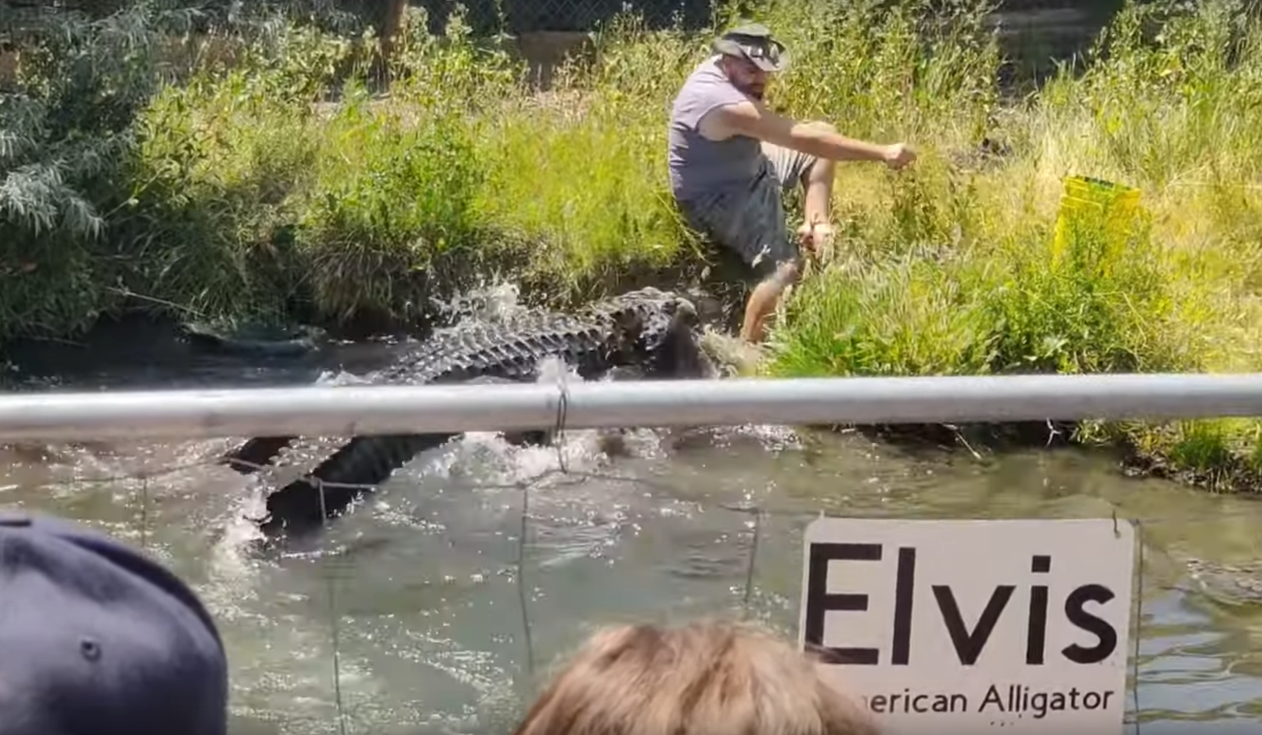 Ein Mann aus Colorado entging nur knapp dem Biss eines 1,80 Meter großen und 300 Kilo schweren Alligators namens Elvis, als er versuchte, das riesige Reptil mit einem rohen Truthahn zu füttern. Der Vorfall ereignete sich auf der Colorado Gator Farm in Mosca, als ein Angestellter, der nur als Chad bekannt ist, ins Wasser geht, um Elvis mit einem rohen Truthahn zu füttern, wie ein am Montag auf der Facebook-Seite des Parks veröffentlichtes Video zeigt.
