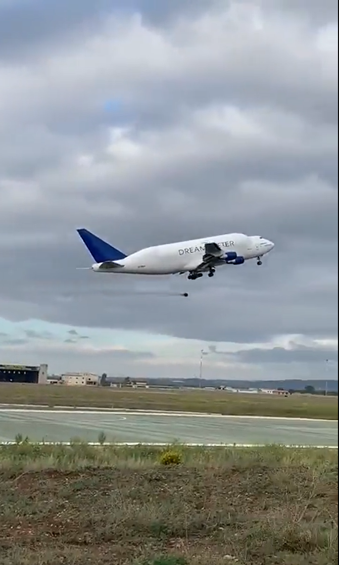 Nun zeigt ein Video wie eine Boeing Dreamlifter in Italien abhebt und dabei ein Rad verliert. Kurz vor dem Verlust des - doch wichtigen - Bauteils, zeigte sich Qualm rundum der Landevorrichtung. Das Rad landet dann mit hoher Geschwindigkeit am Boden und rollt noch einige Meter, bevor es zum Stillstand kommt. Das Flugzeug fliegt unbehelligt weiter.