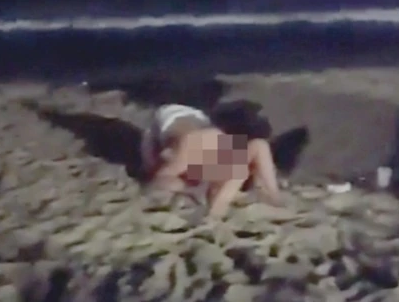 Bei den Anwohnern kam der „Sex on the beach“ weniger gut an. Während ein Mann die Nummer mit seinem Handy aufnimmt und dabei kommentiert, schreiten andere zur Tat.