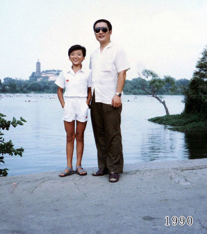Hua Yunqing und seine Tochter Huahua begannen eine herzerwärmende Familientradition, indem sie seit 1980 jedes Jahr an der gleichen Stelle an einem See in Zhenjiang, Jiangsu, China, ein Foto machten.