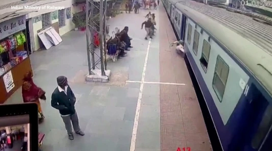 Der Rentner wurde von einem geistesgegenwärtigen Bahnmitarbeiter gerettet, nachdem er im Bahnhof Purnia Junction im ostindischen Bundesstaat Bihar unbedacht in einen fahrenden Zug gestiegen war.