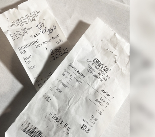 Unerwarteter Zahltag für eine Kellnerin in den USA. Ein Mann war vom Service in Alfredo's Cafe in Scranton derart begeistert, das er eine hohe Summe als Trinkgeld spendierte.