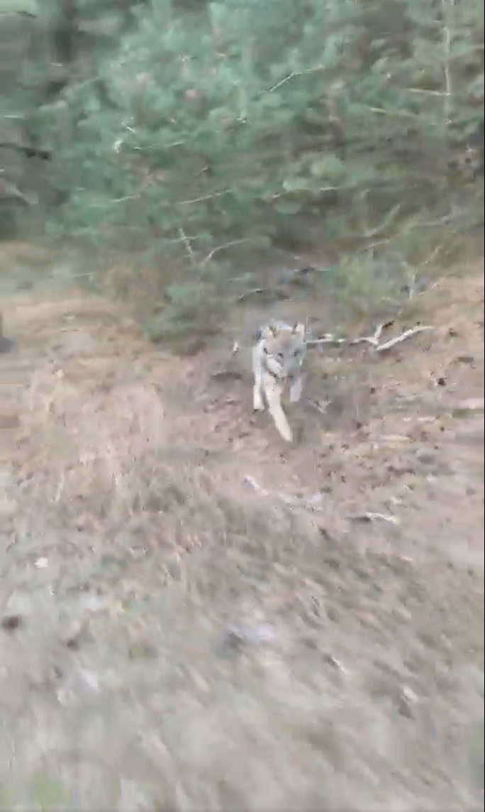 Dieser Rennradfahrer musste ordentlich in die Pedale treten, nachdem ein Wolf aus dem Wald die Verfolgungsjagd aufgenommen hatte. Eine Kamera, welche der Radler am Körper hatte, filmte das ganze Geschehen.