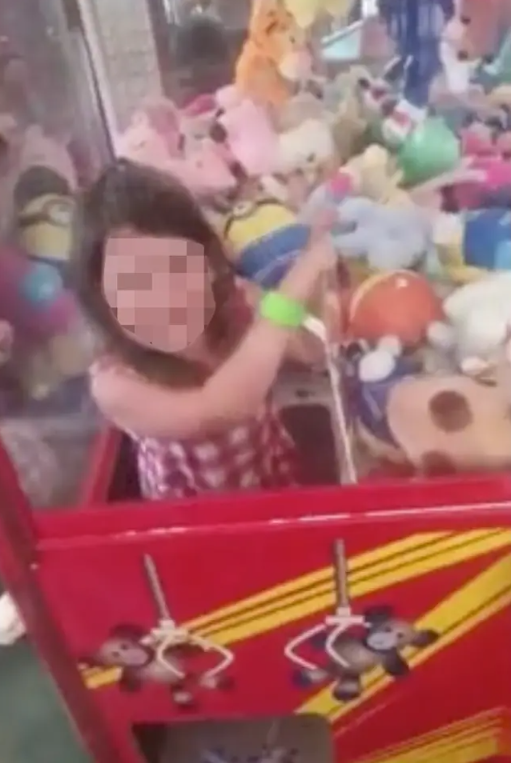 Eine Vierjährige wurde in einem Spielautomaten eingeklemmt, nachdem sie versucht hatte, einen Teddybären zu gewinnen.