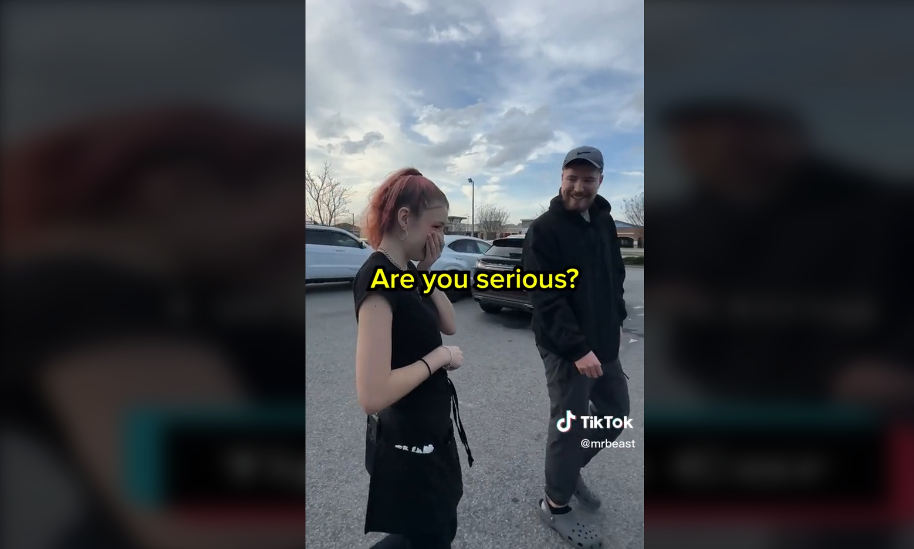 Nun beschenkte er eine Kellnerin seines Stammlokals mit einem neuen Auto. Nachdem er die Kellnerin gefragt hatte, was das höchste Trinkgeld war, das sie je bekommen hatte, antwortete sie "50 Dollar". Daraufhin fragte Mr. Beast, ob jemand schon einmal Trinkgeld für ein Auto gegeben habe, und übergab ihr die Schlüssel.