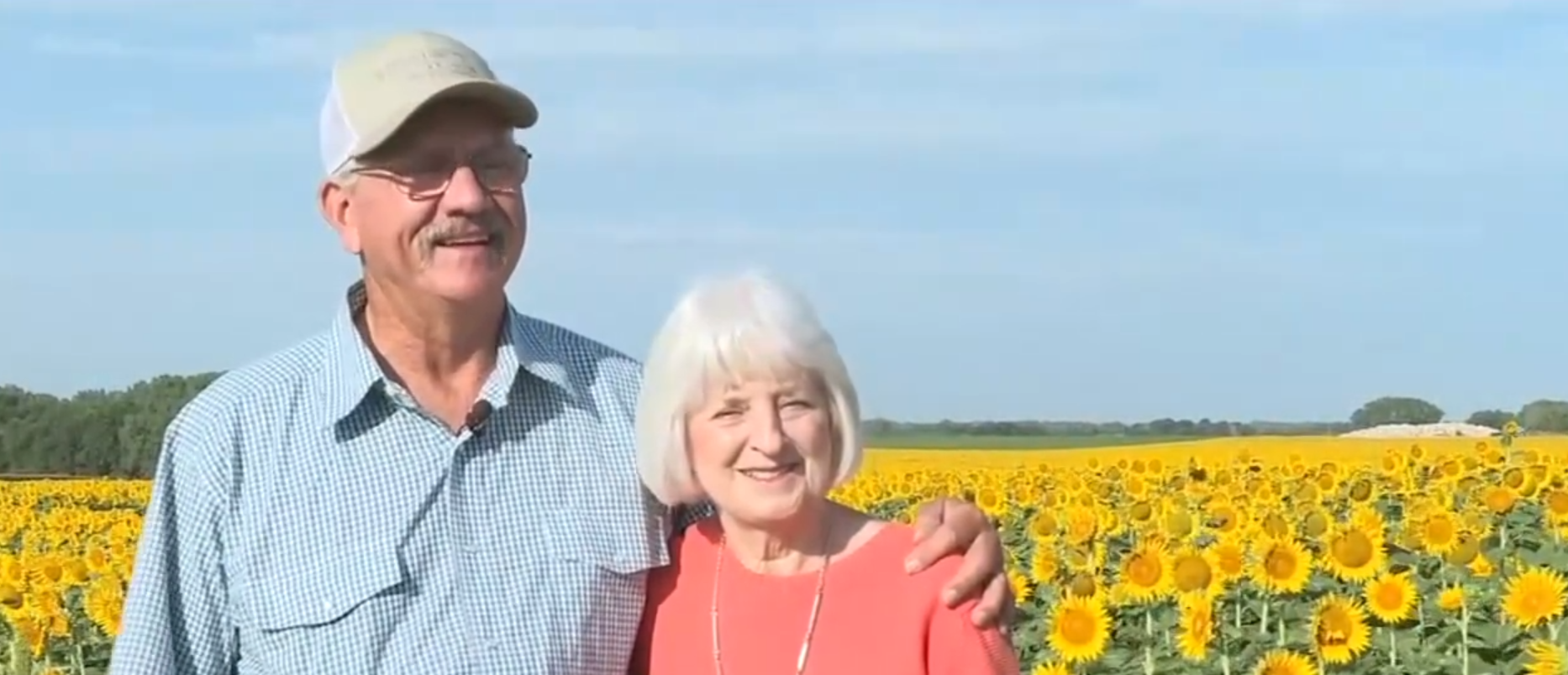 Ein Farmer in Kansas wollte seine Frau zu ihrem 50. Jahrestag überraschen. Da er wusste, dass seine Frau Renee Sonnenblumen liebt, beschloss Lee Wilson, einige auf seinem Feld zu pflanzen. Genauer gesagt, 1,2 Millionen davon.