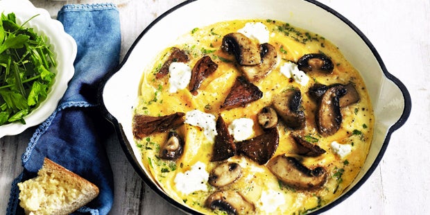 Dauer: 25 min Schwierigkeit: leicht Portionen: 4 Zutaten 400 g Pilze, z. B. Austernpilze und Champignons 2 Knoblauchzehen 8 Eier 4 EL Obers 1 Handvoll frisch gehackte Kräuter, z. B. Schnittlauch, Petersilie Salz, Pfeffer, aus der Mühle Muskat 40 g Butter 4 EL Olivenöl 150 g Ziegenfrischkäse Zubereitung 1. Die Pilze putzen und in Scheiben oder Streifen schneiden. Den Knoblauch schälen und fein hacken. Die Eier in einer Schüssel mit dem Obers und den Kräutern verquirlen und mit Salz, Pfeffer und Muskat würzen. 2. Ab jetzt mit jeweils ¼ aller Zutaten arbeiten, um 4 Omeletts auszubacken (oder mit 2 Pfannen gleichzeitig arbeiten). Die Butter mit dem Öl in einer heißen Pfanne aufschäumen lassen. Die Pilze zugeben und darin 3–4 Minuten golden bräunen lassen. Das Ei darüber gießen und mit dem Pfannenwender immer wieder vom Rand zur Pfannenmitte schieben bis das das Omelett beginnt zu stocken. 3. Den Käse darüber bröckeln, nicht mehr rühren und vollständig stocken lassen. Das Omelett sollte dabei schön saftig und auf der Oberfläche feucht-glänzend bleiben. 3 weitere Omeletts auf dieselbe Weise garen. Auf Tellern anrichten und servieren. |