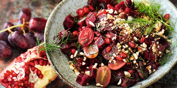 Rote Rüben, Trauben oder bittere Salate – die Zutaten füreinen bunten Herbstsalat sind so vielfältig wie die Jahreszeit. Hinein kommt nämlich alles, was uns auch optischan den rot-goldenen Blätterwald erinnert! Wie man den Salat herbstfit macht, zeigen wir Ihnen hier.