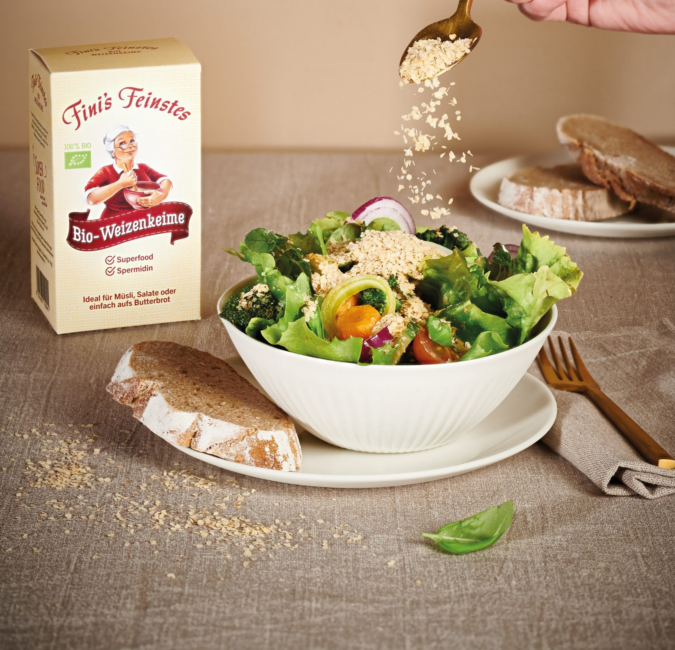 Weizenkeime sind dank ihrer vielen Vitamine und Mineralstoffe, wertvollem Eiweiß und reichlich Ballaststoffen nicht nur der nährstoffreichste Teil des Korns. Ihre besonders hohe Spermidin-Konzentration macht sie auch zum Hoffnungsträger der Wissenschaft: Dabei handelt es sich um ein biogenes Polyamin, also einen körpereigenen Stoff, der in allen Körperzellen vorkommt. Zu finden ist er immer dort, wo Zellen arbeiten und wachsen. Beschleunigt sich der Stoffwechsel etwa durch Sport, steigt auch der Spermidin-Spiegel im Körper. Das macht gesünder und hält jung.