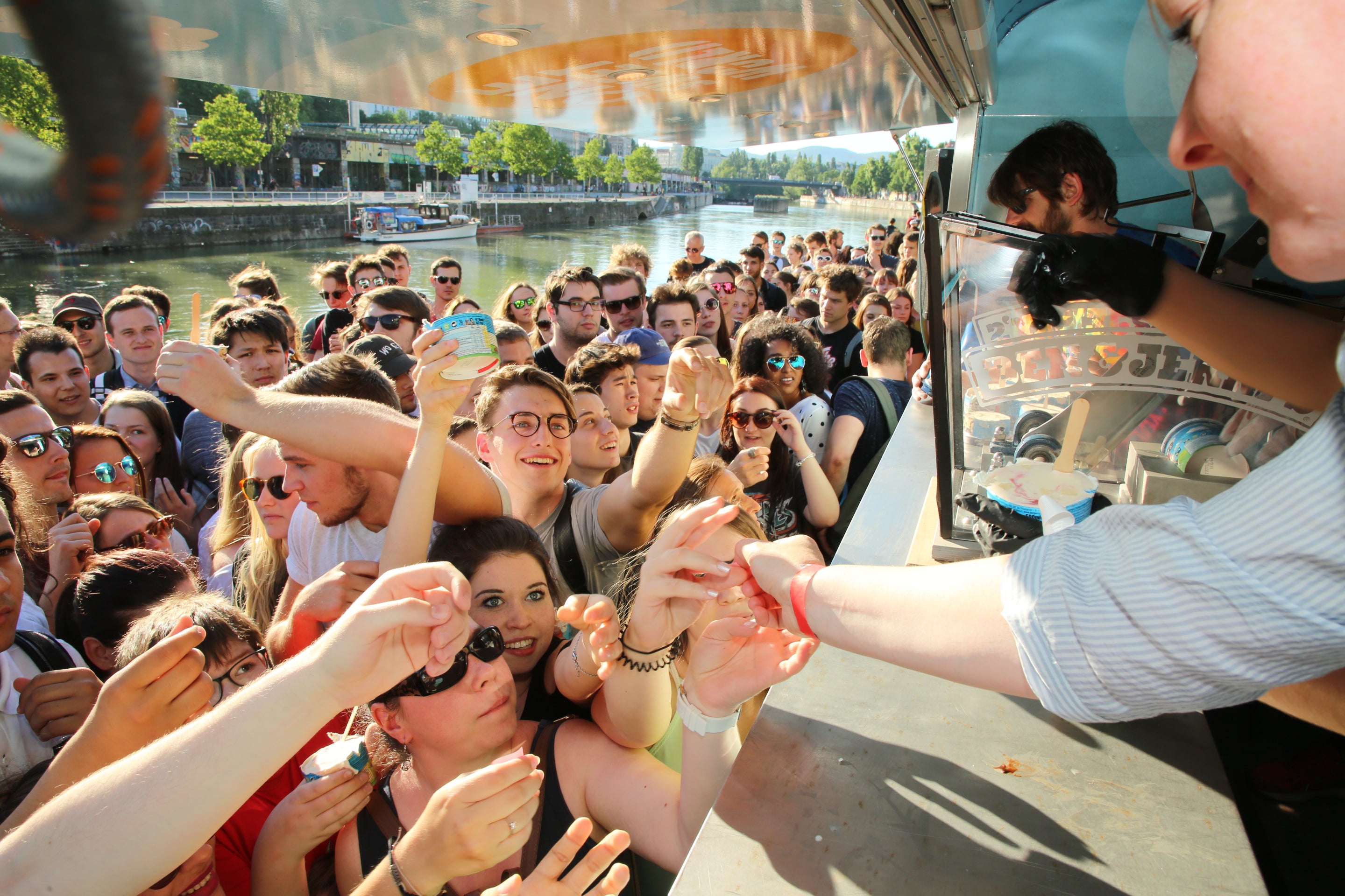 Am 3.4.2023 ist es wieder so weit. Der Ben&Jerrys 'Free Cone Day' am Badeschiff am Schwedenplatz steht wieder an. Alle Eisfans können vorbeikommen und sich mit einem Gratis-Eis abkühlen.
