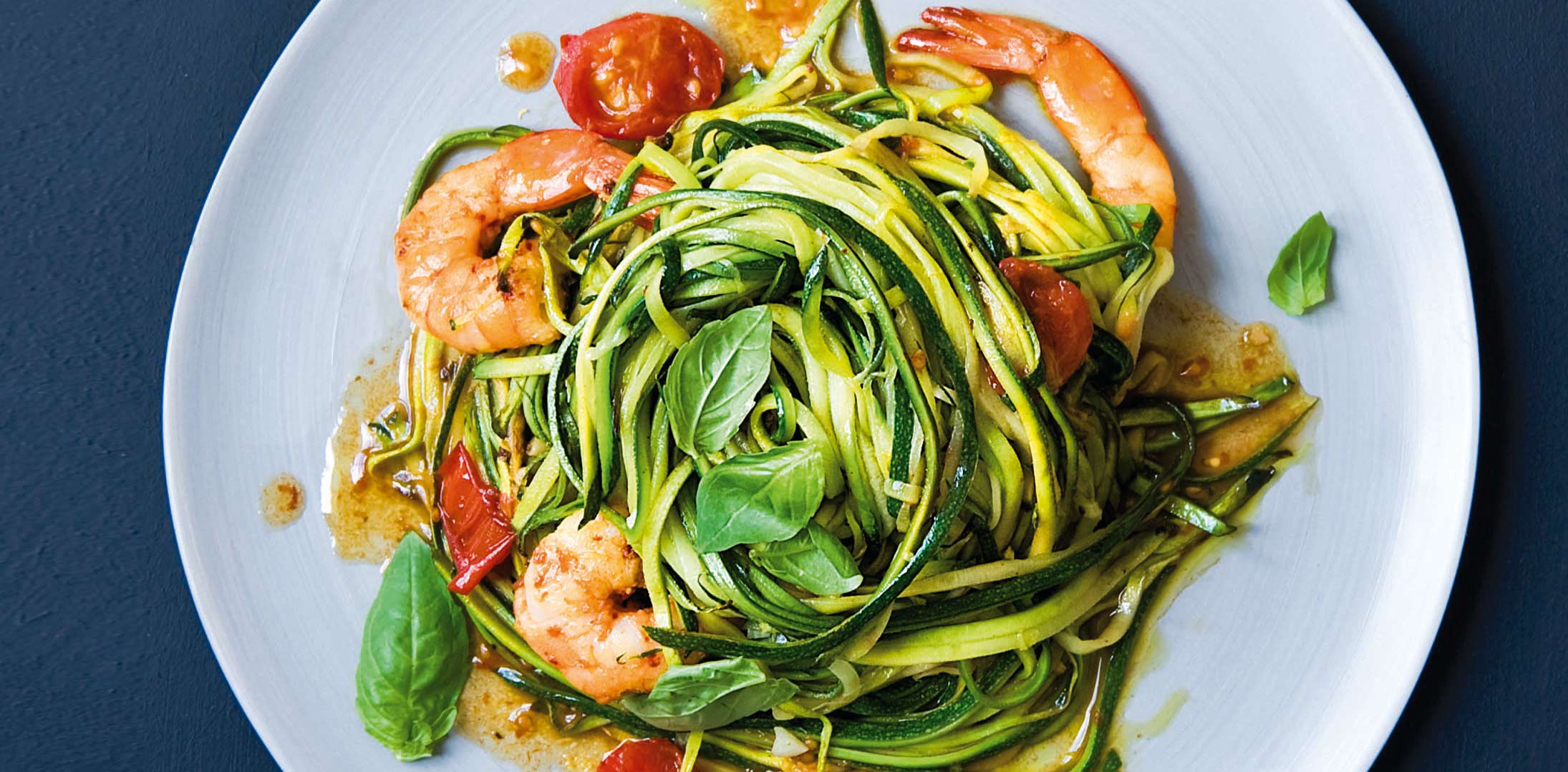Zucchinispaghetti mit Garnelen und Knoblauch