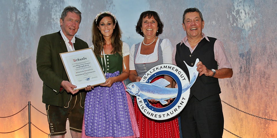 Cartin Neumayer alias CookingCatrin wurde zur neuen kulinarischer Botschafterin der Salzkammergut Fischrestaurants. Die geborene Lungauerin ist nicht nur ein bekennender Salzkammergut-Fan, sondern auch leidenschaftliche Köchin und Fischliebhaberin. Neumayer ist übrigens nach Schriftsteller Alfred Komarek, der seiner Nachfolgerin auch gleich vor Ort persönlich gratulierte, Gerhard Tötschinger, den Schauspielern Karl Merkatz und Fritz Karl, Finanzminister Hans Jörg Schelling und ÖFB Präsident Leo Windtner die erste weibliche Genussbotschafterin der Salzkammergut Fischrestaurants.