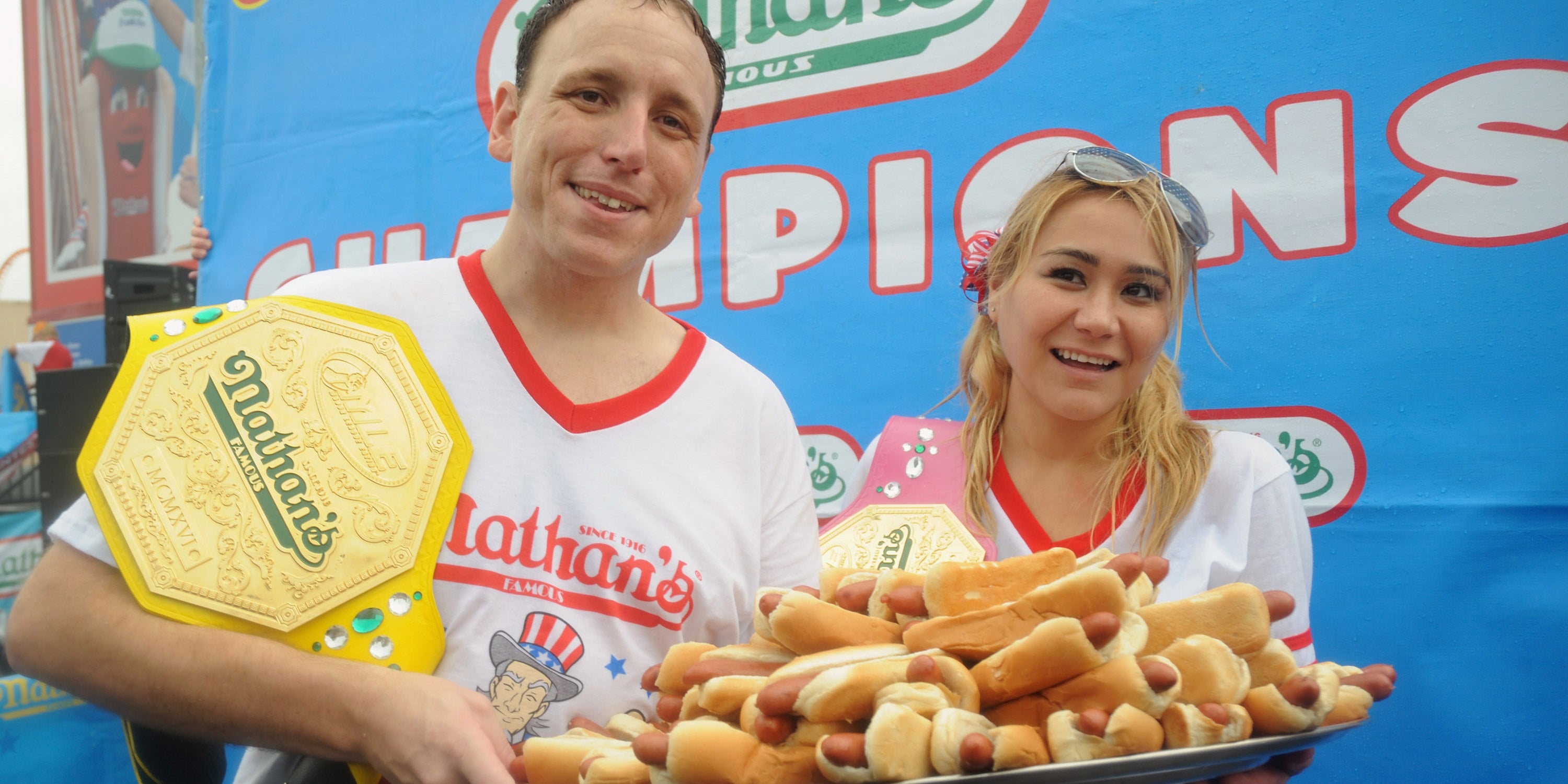 Jährlich findet das traditionelle Hotdog-Wettessen in New York statt. Acht Mal in Folge gewann der Californier Joey Chestnut schon diesen Esswettbewerb. Den Sieg holte er 2014 in 10 Minuten. In dieser Zeit verspeiste der Amerikaner 61 Hotdogs. Im Jahr zuvor schaffte er es sogar 69 Hotdogs in der selben Zeit zu essen. Der Ess-Profi ist Anfang dreißig und wiegt 93 kg.