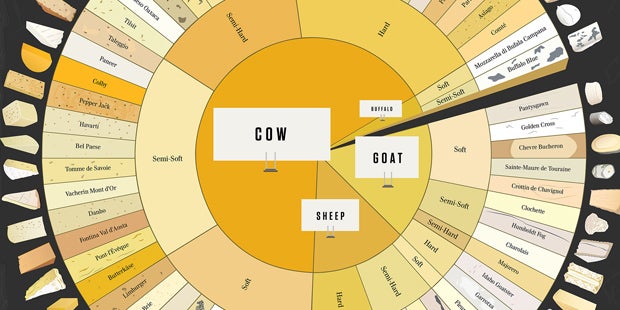 Ein einziges, super einfaches Schaubild reicht, um von einem Nichtwissenden zu einem echten Käse-Experten zu werden! Wer schon immer mit seinen Gourmet-Kenntnissen vor Freunden prahlen wollte, sollte sich dieses Käserad genauer anschauen.