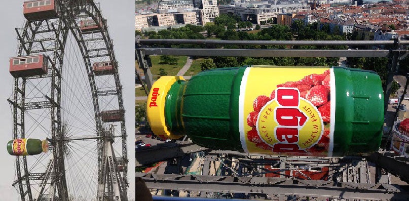 Bis 30.06.2015 kann die überdimensionale Pago-Flasche am Wiener Riesenrad noch bestaunt werden!