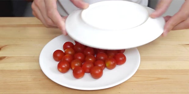 Jede Paradeiser einzeln schneiden war gestern! Mit diesem Trick bearbeiten Sie alle auf einmal...