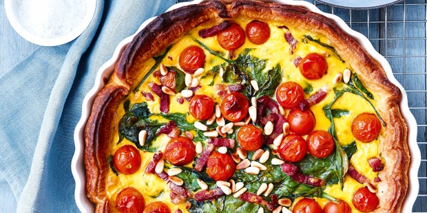 Zutaten Für den Teig: ½ Würfel frische Germ, 21 g 300 g Mehl, ½ TL Salz 3 EL Olivenöl, Mehl, zum Arbeiten Für den Belag: 700 g Zucchini, grün und gelb gemischt, 2 EL Olivenöl 3 Eier, 250 ml Obers Salz, Pfeffer, aus der Mühle 1 TL gehackter Thymian 100 g Brie, 100 g Crème fraîche Butter, für die Form 70 g geriebener Gruyère