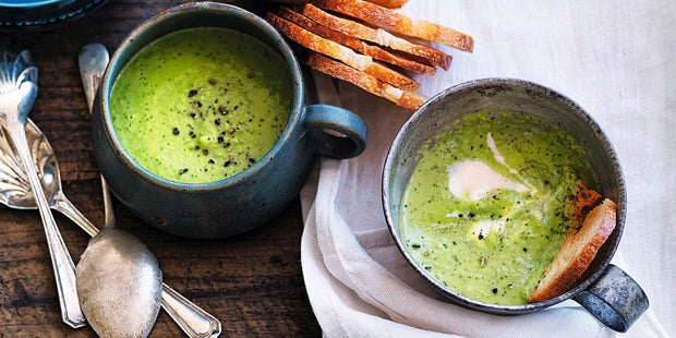 Dauer: 42 min Schwierigkeit: leicht Portionen: 4 Zutaten 1–2 Schalotten 1 Knoblauchzehe 2 EL Sonnenblumenöl 500 g Erbsen ca. 750 ml Gemüsefond 4–5 Minzblättchen 100 g Joghurt 100 g Frischkäse Salz 1 Spritzer Zitronensaft 4 EL Joghurt, für die Garnitur Pfeffer, aus der Mühle Brotchips, zum Servieren Zubereitung 1. Die Schalotten und die Knoblauchzehe schälen, fein hacken und in heißem Öl farblos anschwitzen. Die Erbsen zugeben und mit dem Fond ablöschen. Etwa 10 Minuten leise gar köcheln lassen. Von der Hitze nehmen und abkühlen lassen. 2. Anschließend zusammen mit den Minzblättchen fein pürieren und durch ein Sieb streichen. Das Joghurt (bis auf 4 EL) und den Frischkäse unterrühren und mit Salz, Zitronensaft und Pfeffer würzen. Im Gefrierfach ca. 30 Minuten sehr kalt werden lassen. 3. Die Suppe nochmals abschmecken, in Schüsseln füllen, mit je einem Klecks Joghurt garnieren und mit Pfeffer übermahlt servieren. Dazu beispielsweise Brotchips reichen. |