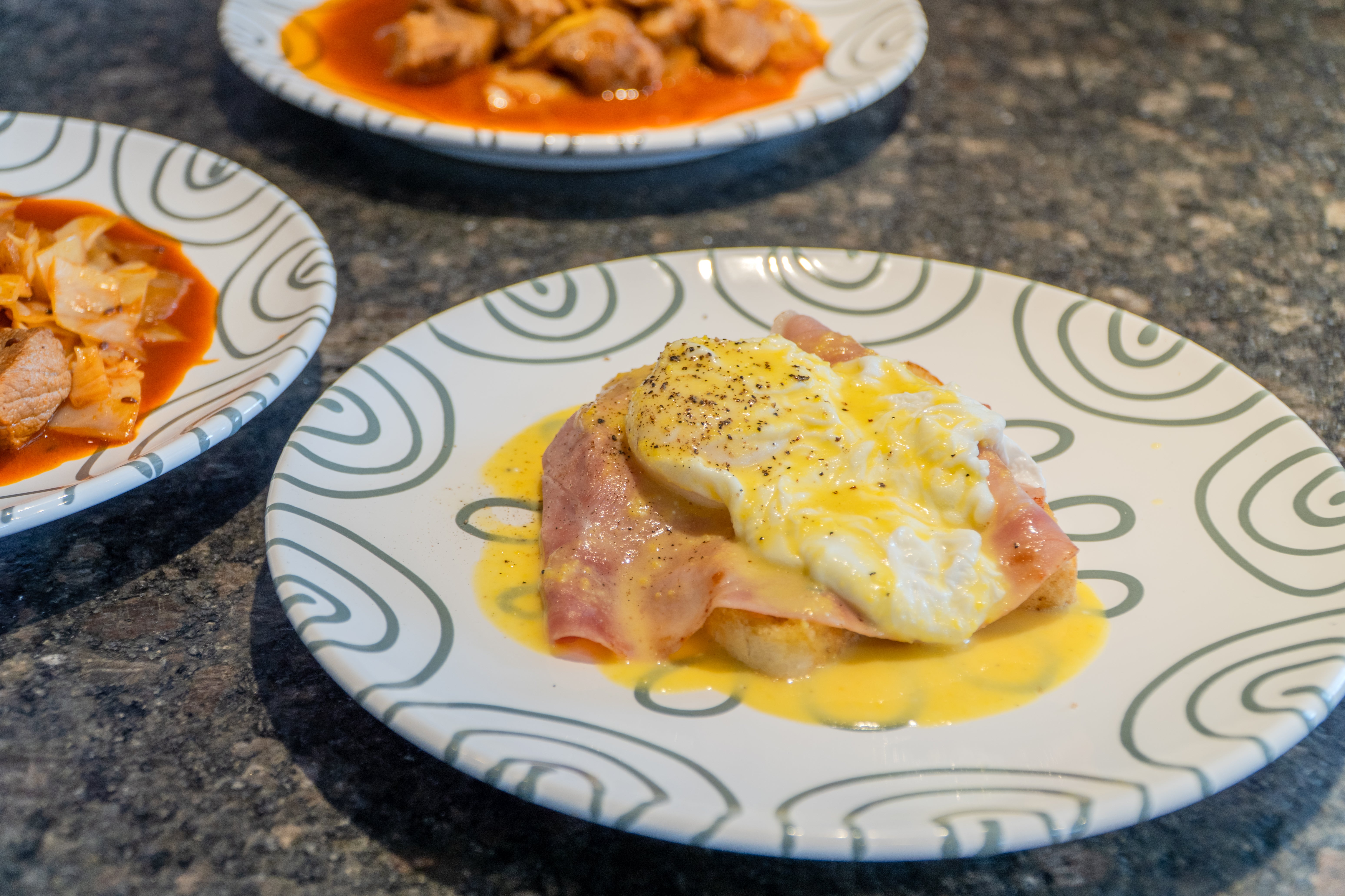 Zarte pochierte Eier auf knusprig gebratenem Toast mit würzigem Schinken und samtig-cremiger Hollandaise — so wird der Klassiker Eggs Benedict zur edlen Frühstücks- oder Brunch-Delikatesse.