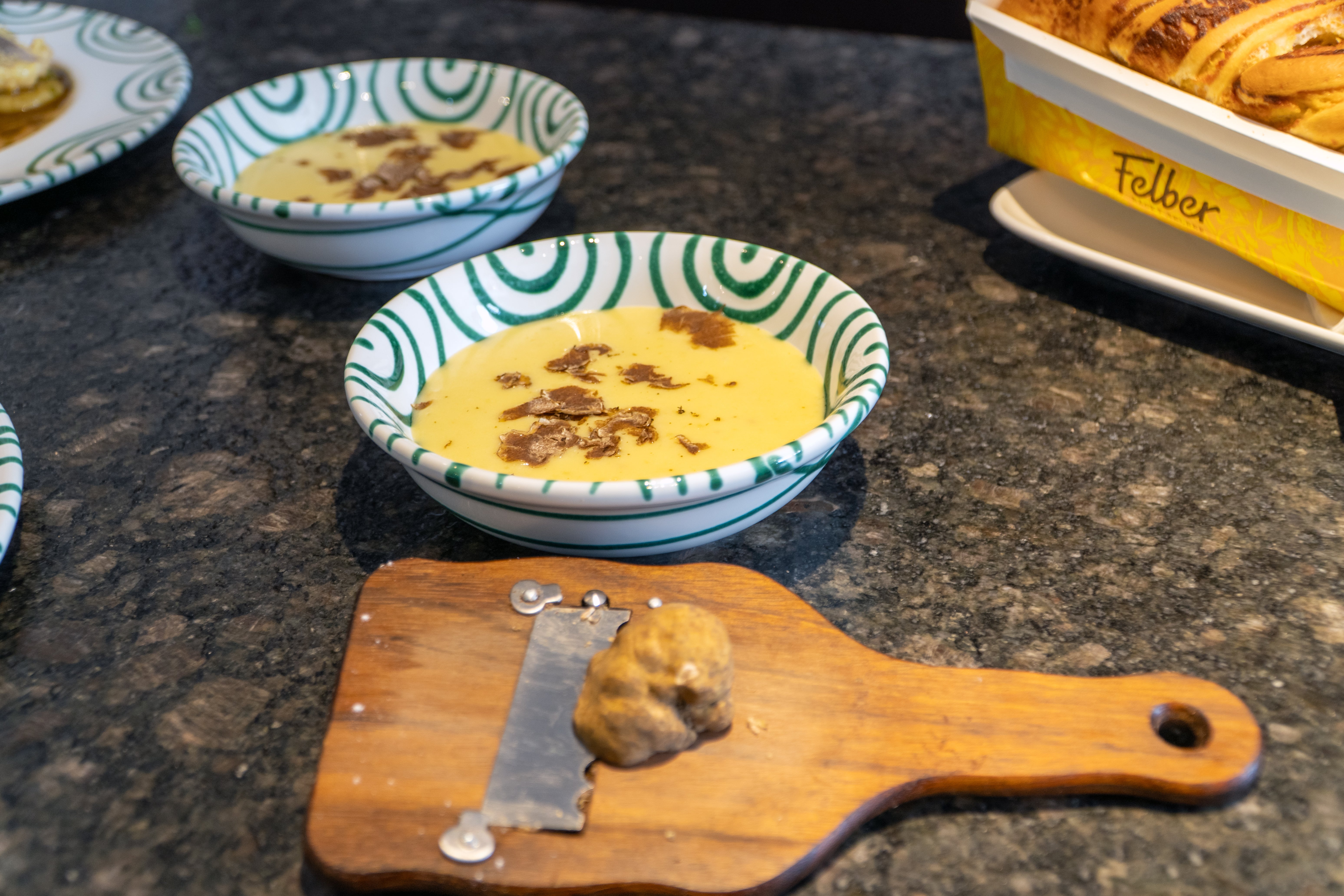 Ein samtig-cremiges Erdäpfelpüree, verfeinert mit butterweicher Trüffel-Note – perfekt, wenn die Trüffel erst unmittelbar vor dem Servieren gehobelt werden, damit ihr zarter Duft voll zur Geltung kommt.
