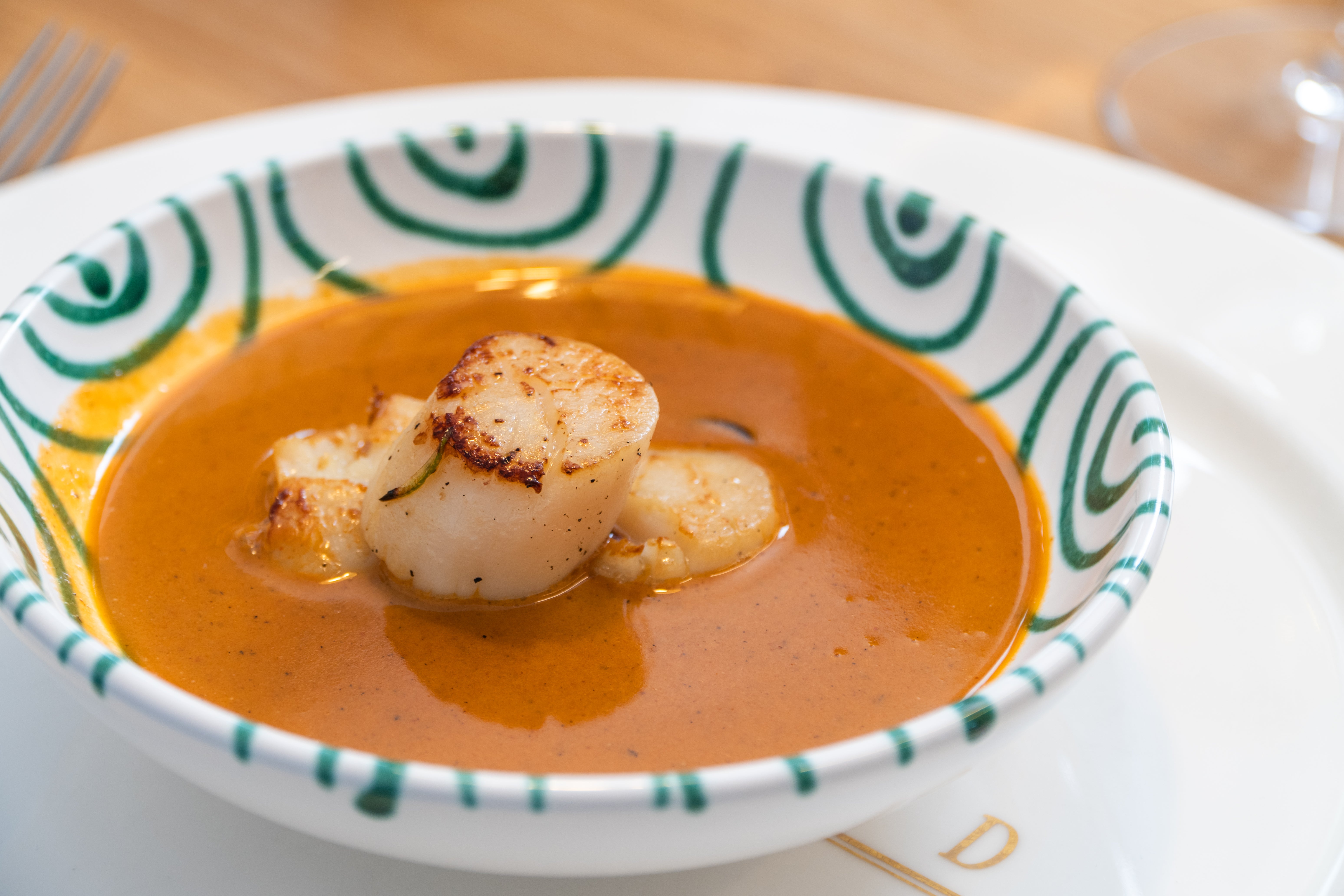 Diese klassische Hummer-Bisque steht für feine Küche mit Tiefe und Eleganz. Kräftiger Hummerfond, veredelt mit Cognac und Obers, bildet die samtige Basis. Gebratene Jakobsmuscheln sorgen für einen edlen Abschluss und intensiven Geschmack.