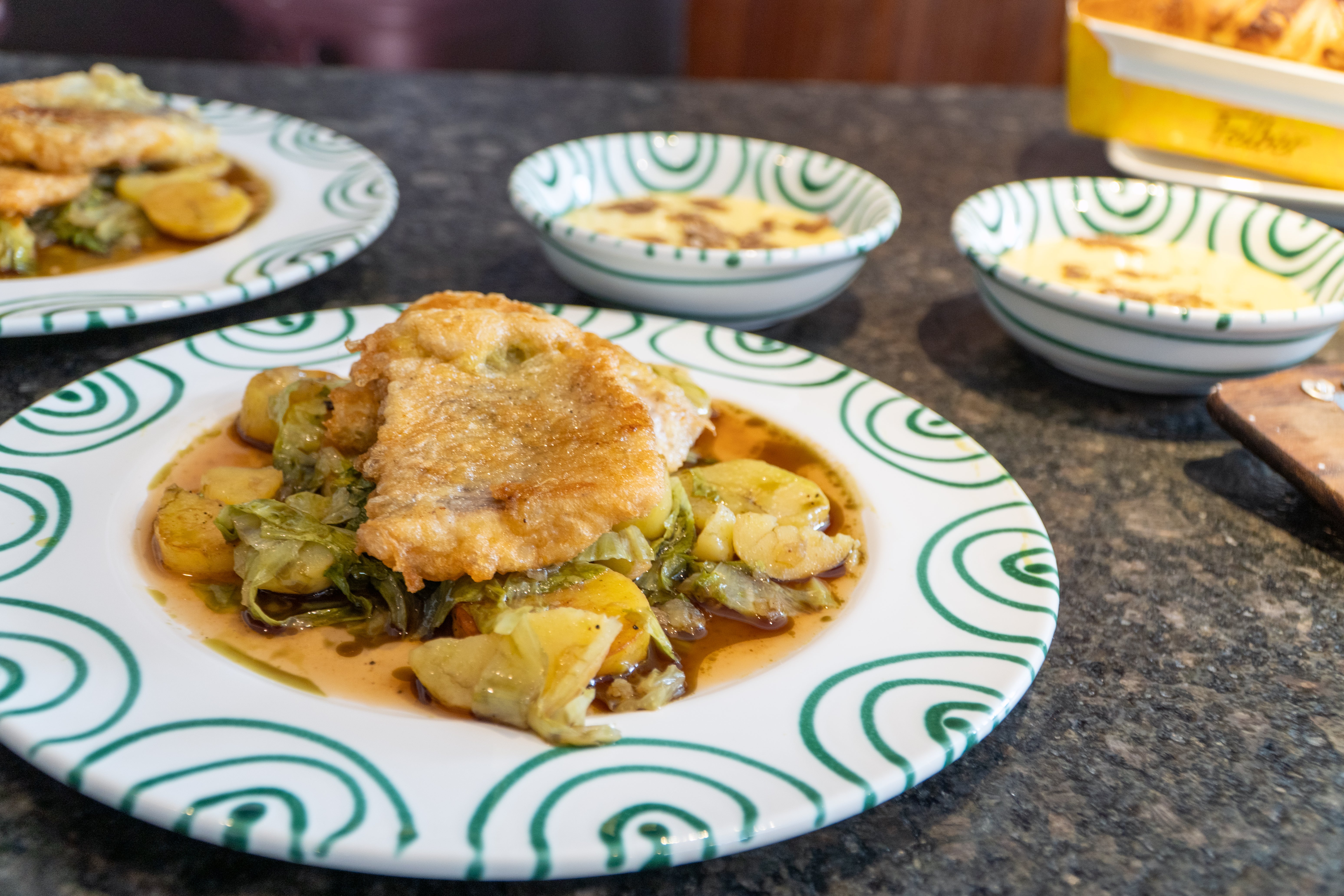 Knusprig gebratene Saiblingsschnitzerl nach Pariser Art, serviert auf knackigem Kärntner Endiviensalat – ein edles und zugleich frisches Gericht, das Fisch und Salat perfekt vereint.