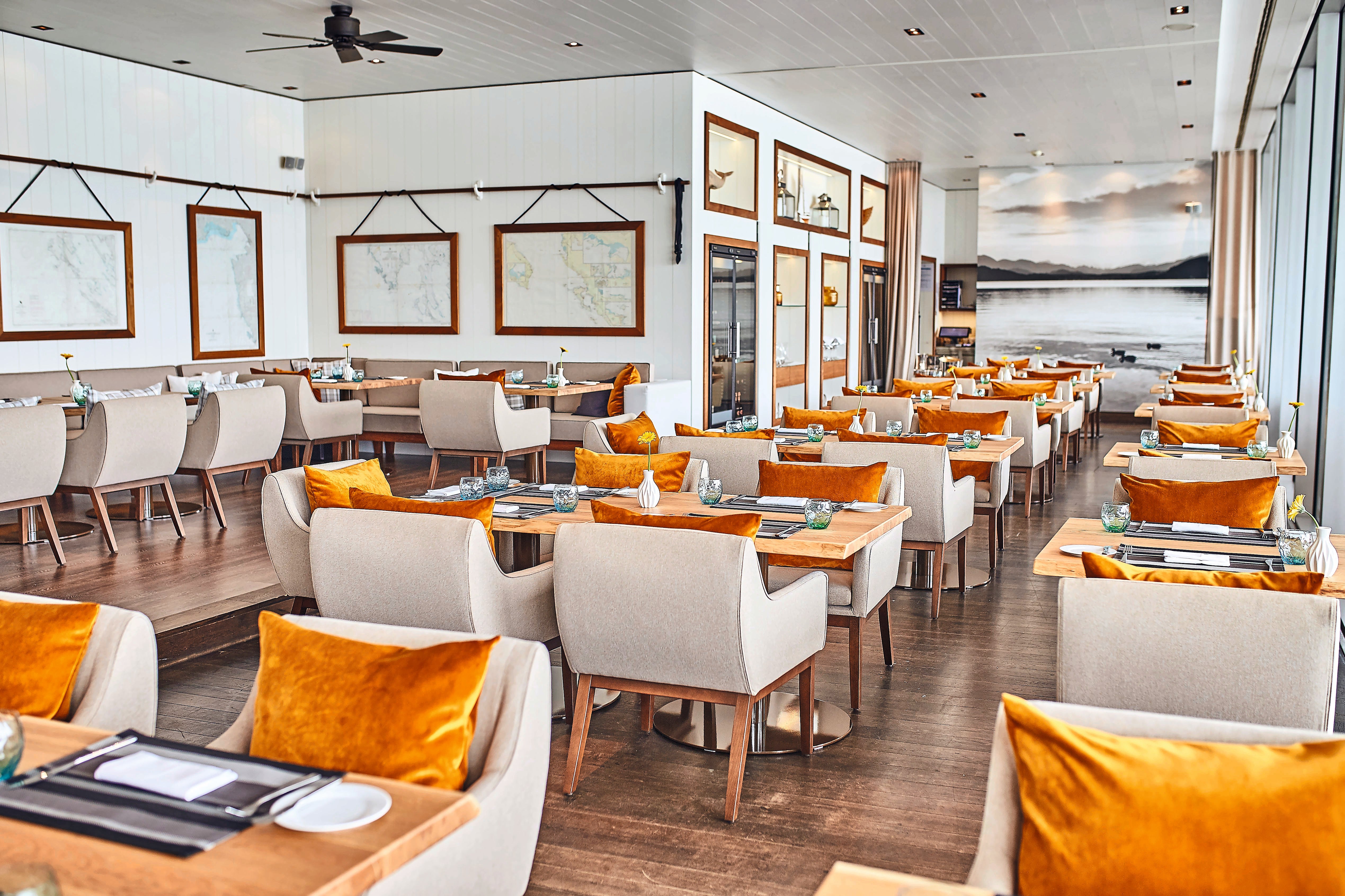 Der Panoramablick bietet großes Kino und das mit Beige- sowie warmen Goldtönen neu gestaltete Restaurant Seespitz und die Outdoor-Aperitif-Lounge auf den Seeterrassen des Falkensteiner Schlosshotel Velden einen Gourmet-Hotspot mit Wohlfühlfaktor. Küchenchef Thomas Gruber zeichnet mit seinem sehr persönlichen, authentischen Stil für die Küche verantwortlich.