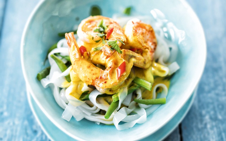 3. Die Nudeln in ein Sieb abgießen, zu den Bohnen geben und beides zusammen 1 weitere Minute köcheln lassen. Anschließend abgießen, kurz abtropfen lassen und in Teller verteilen. Mit der Garnelensauce übergießen, mit Koriander bestreuen und sofort servieren.