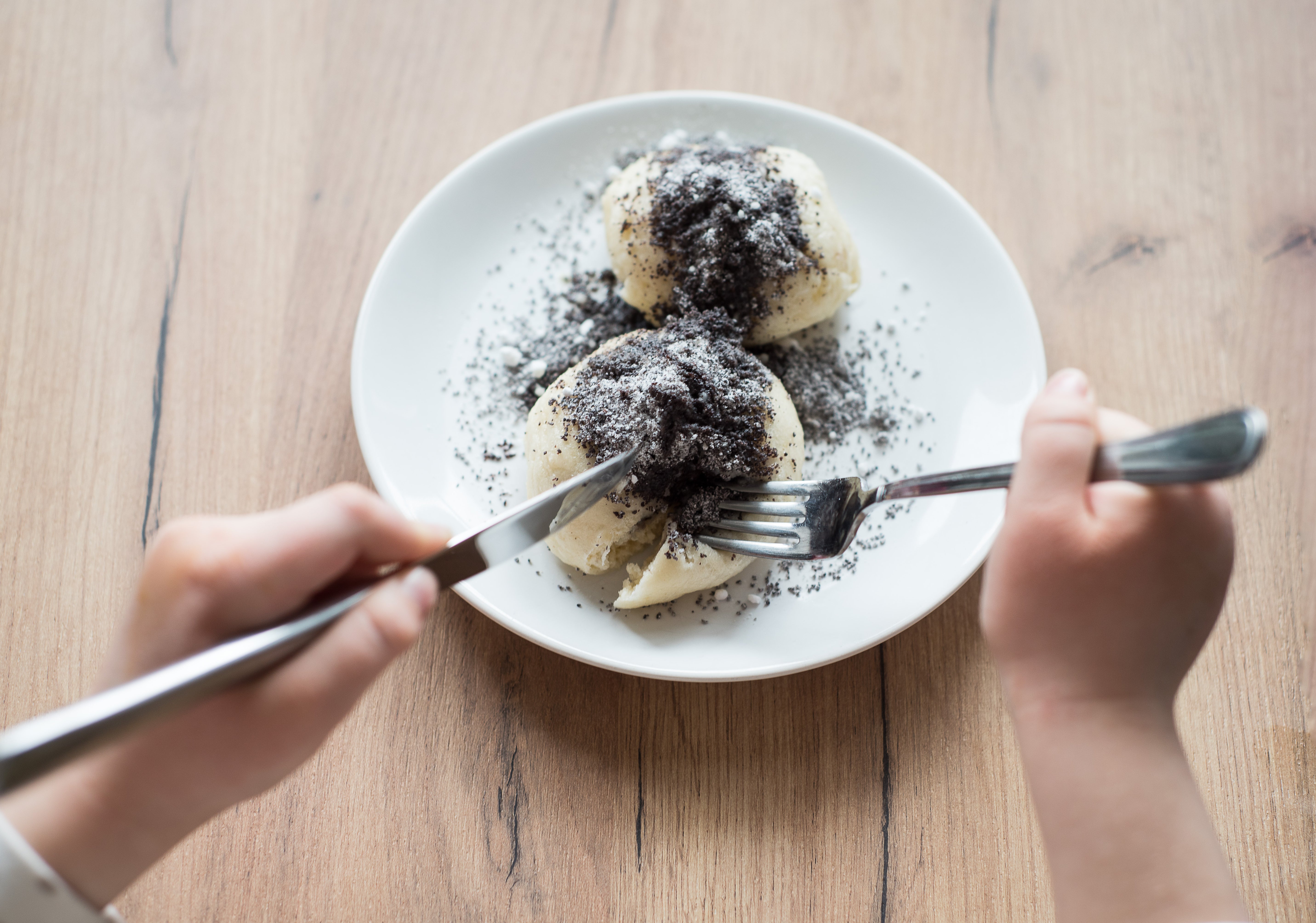 - Stärke und Zucker einrühren und alles 2-3 Minuten unter Rühren kochen lassen. Temperatur reduzieren und das Eigelb einrühren. Vanilleschote entfernen und die Sauce kurz warm halten, aber nicht mehr kochen. Germknödel auf Tellern anrichten, mit der Vanillesauce umgießen, mit dem Mohn-Zucker bestreuen und servieren.