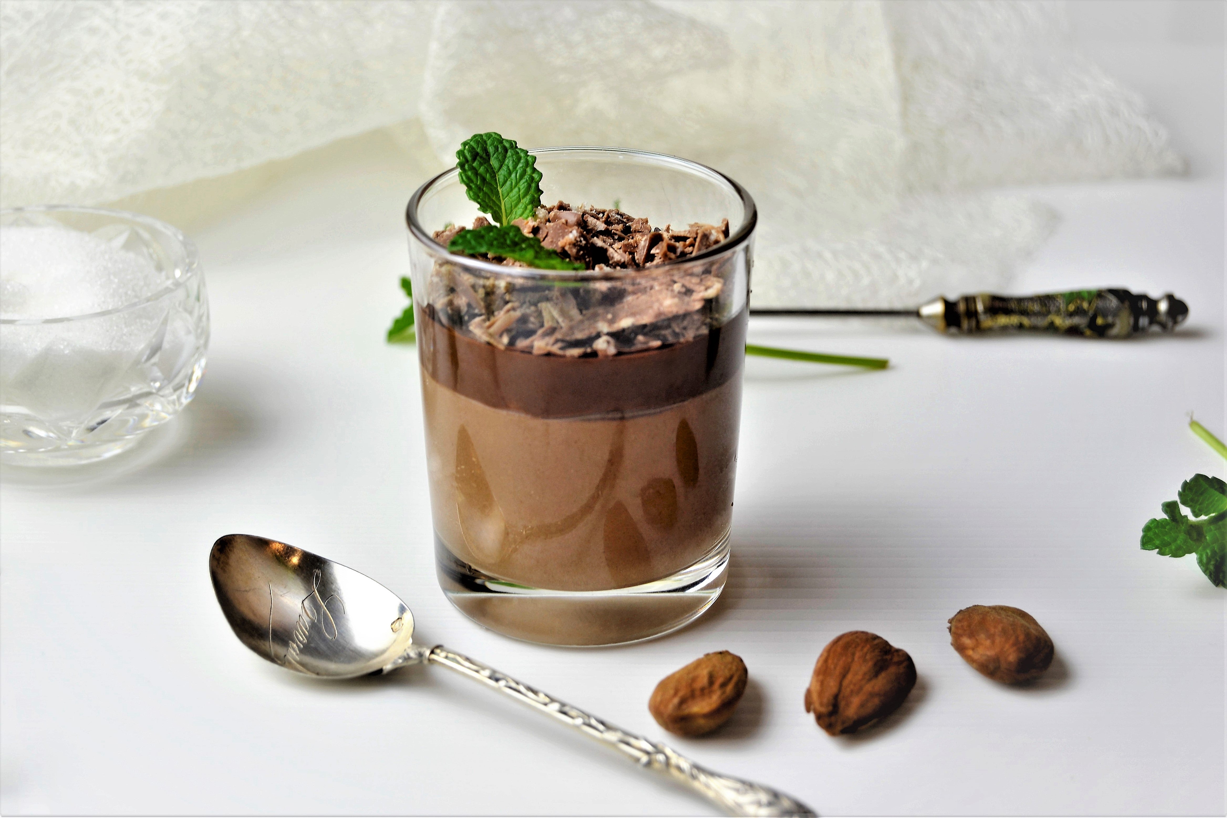 - Die Mandeln rösten und abkühlen lassen. Klein hacken und mit den Kakao-Nibs vermischen. Das übrige Obers steif schlagen und vor dem Servieren auf die Mousse setzen. Mit der Mandel-Mischung bestreuen.
