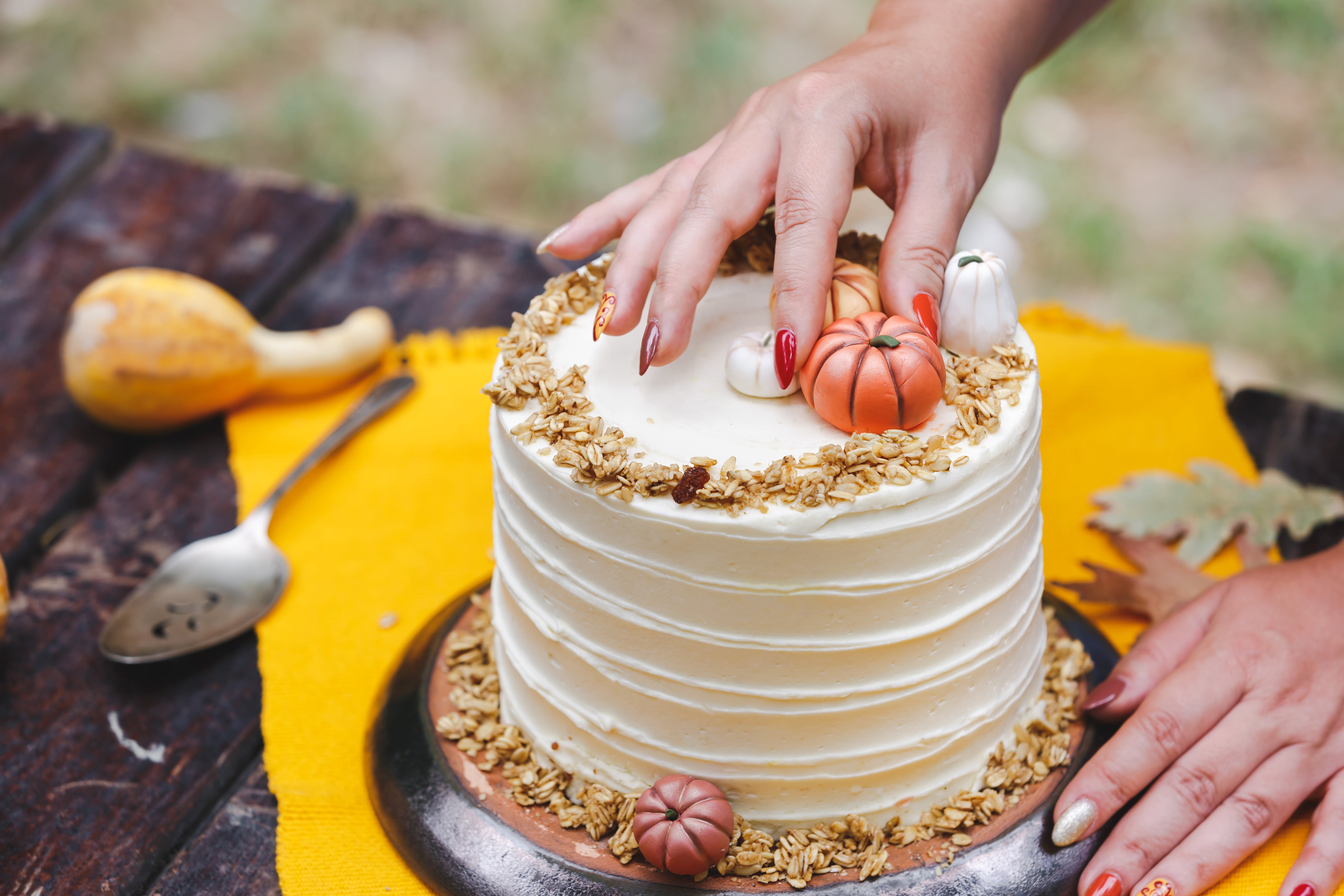 - Die Kürbis-Schichttorte ca. 3 Stunden kühlstellen und vor dem Servieren nach Belieben mittig mit kandierten Früchten bestreuen.