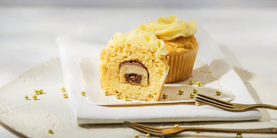 1. Den Ofen auf 180 °C Umluft vorheizen. Die Mulden eines Muffinbackblechs mit Papierförmchen auslegen. Die Butter mit dem Zucker schaumig schlagen. Die Eier mit dem Zitronensaft verquirlen und zusammen mit dem Mehl und dem Backpulver unter die Masse mengen. Gut verrühren und in die Förmchen füllen. In jeden Cupcake eine Mozartkugel stecken und anschließend im Ofen ca. 25 Minuten goldbraun backen. Aus dem Ofen nehmen und auskühlen lassen.
