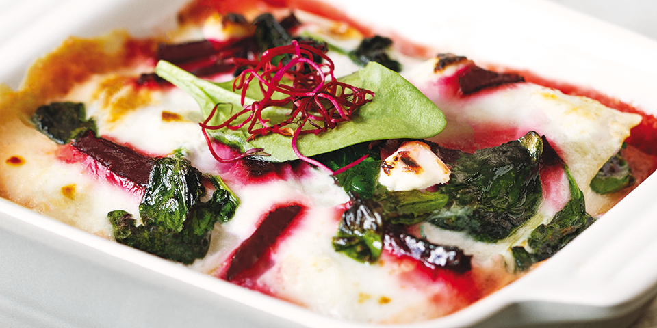 Lasagne mit roter Beete, Spinat und Ziegenkäse