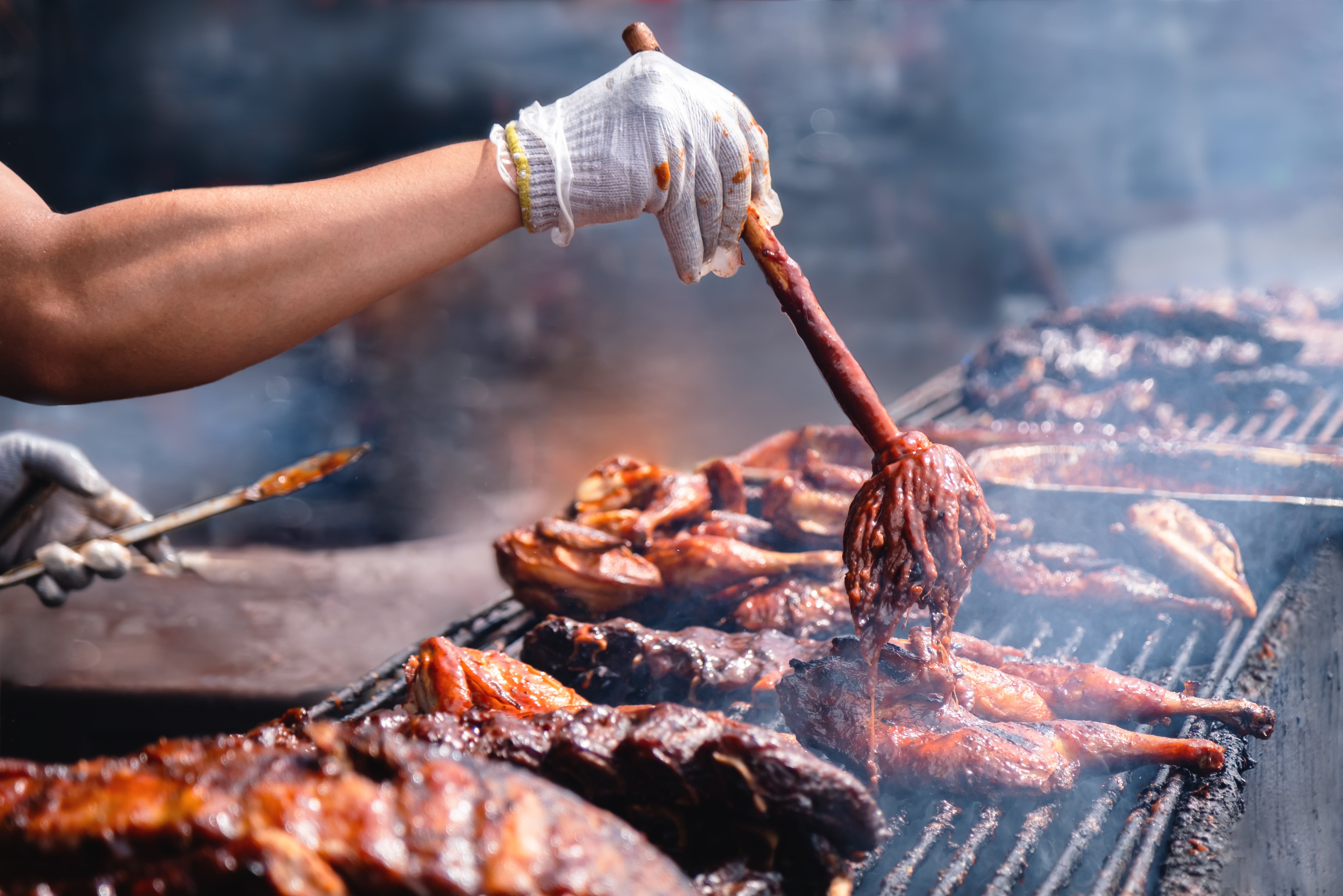 - Die Keulen auf dem Grill bei indirekter Hitze mit geschlossenem Deckel ca. 35 Minuten grillen. Dabei regelmäßig wenden und mit der übrigen Marinade bepinseln.