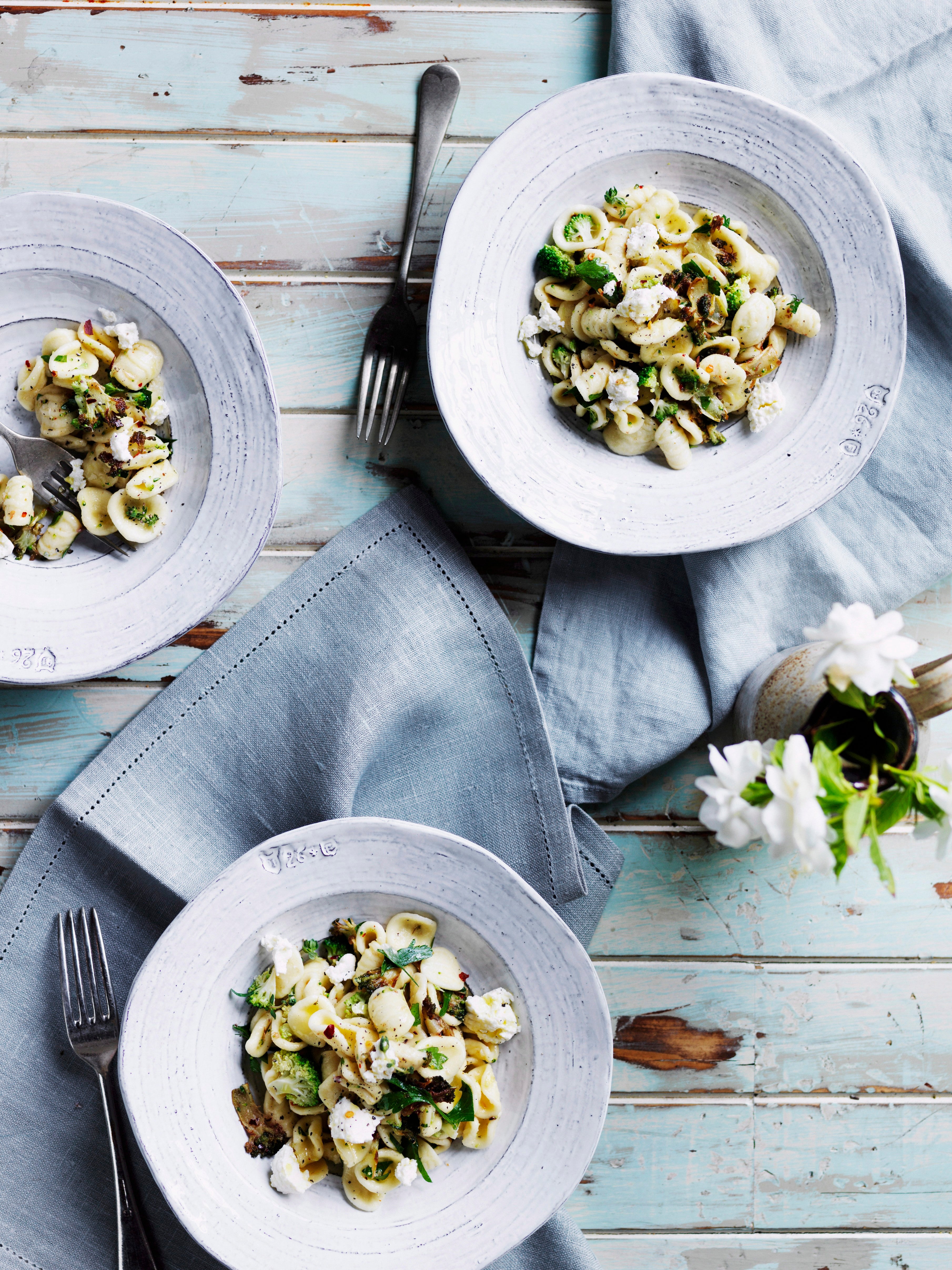 - Fusilli in reichlich Salzwasser nach Packungsanleitung al dente garen. Kohlsprossen waschen, putzen und halbieren. In kochendem Salzwasser ca. 6 Minuten blanchieren, dann eiskalt abschrecken und abtropfen lassen.